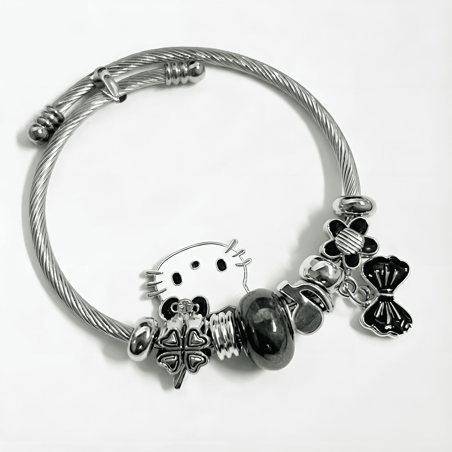 -Diseño Temático Hello Kitty: Pulsera decorada con dijes inspirados en Hello Kitty, ideal para fans del personaje y amantes de los accesorios kawaii.