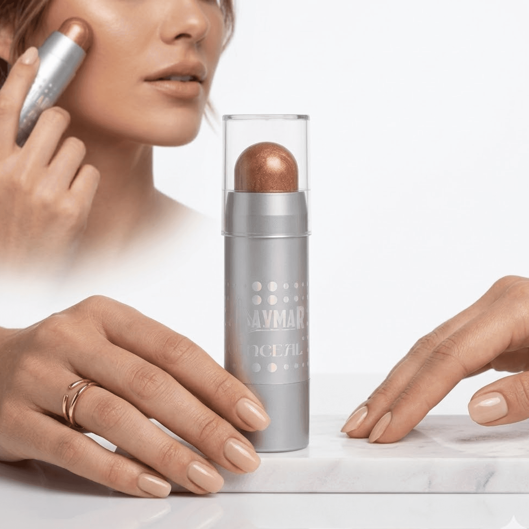 -Iluminador en Barra: Presentación práctica y compacta que permite una aplicación rápida y precisa.